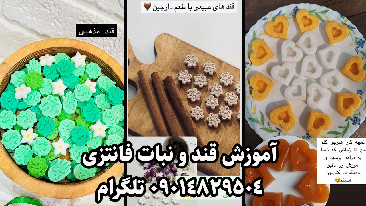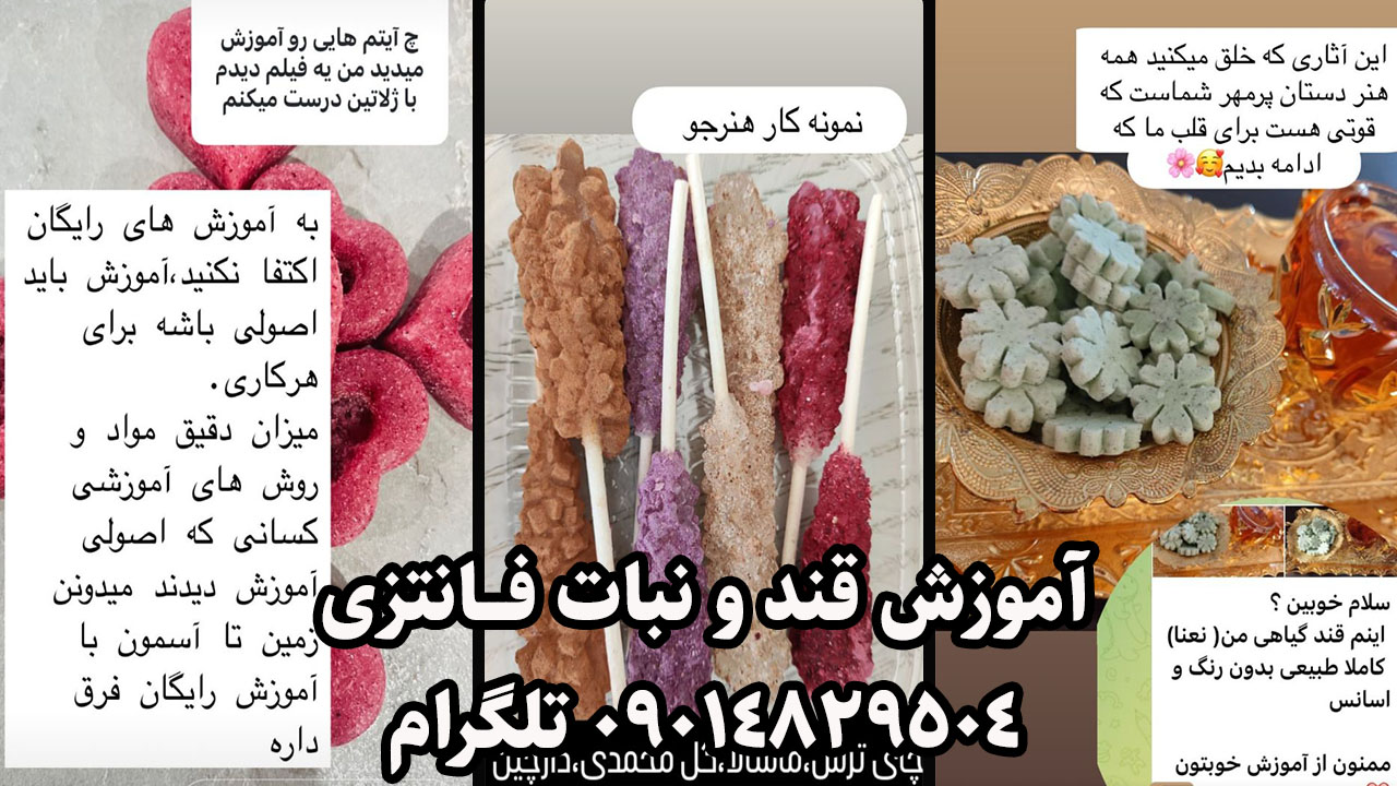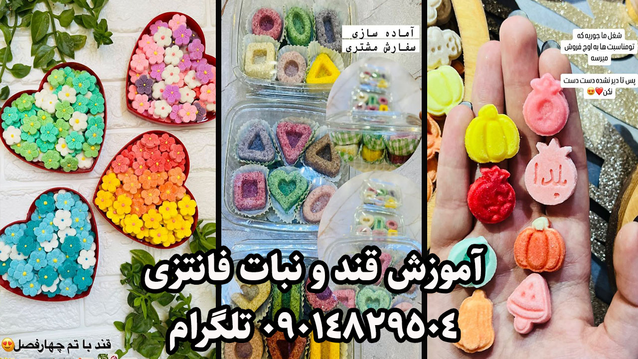 آموزش قند و نبات فانتزی به همراه آموزش بسته بندی بازاری و نحوه فروش است و مربی تا زمانیکه شما به درآمد برسید کنار شماست