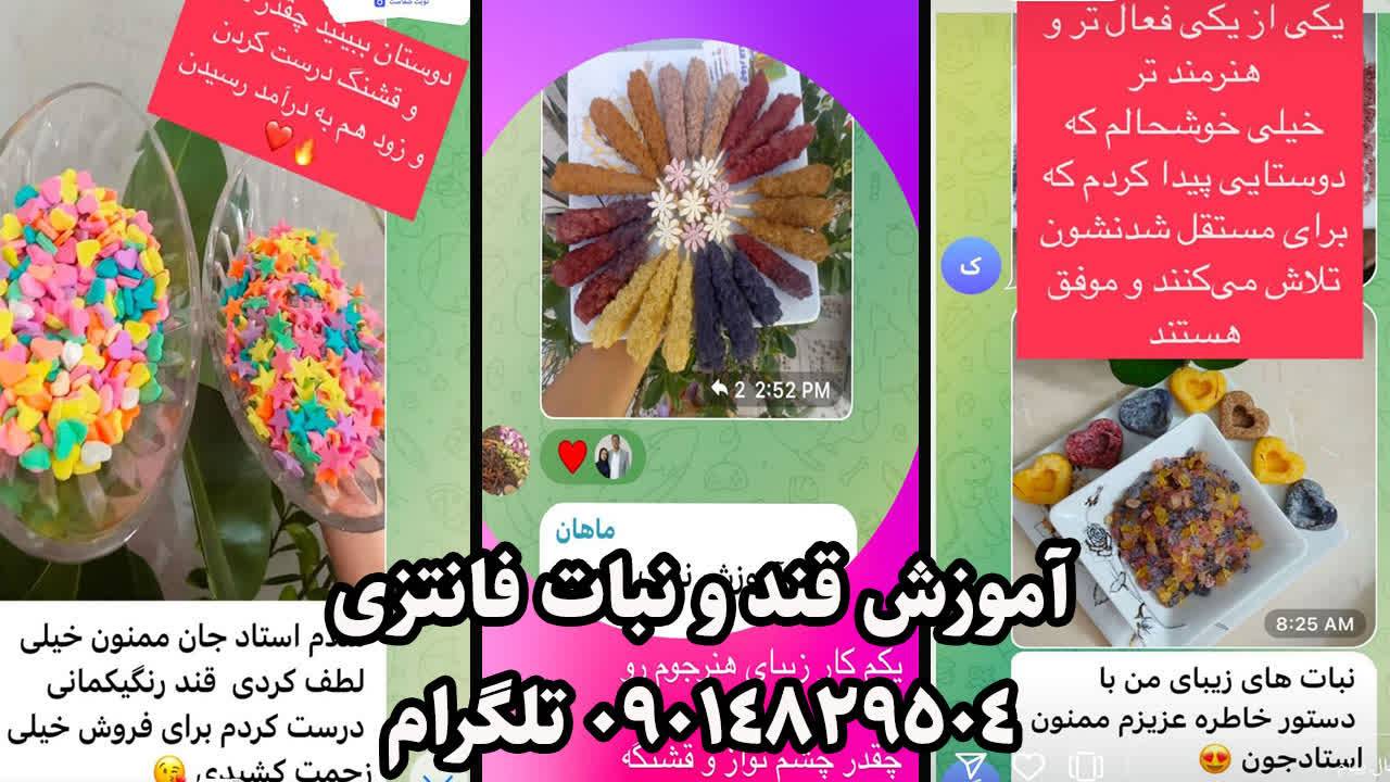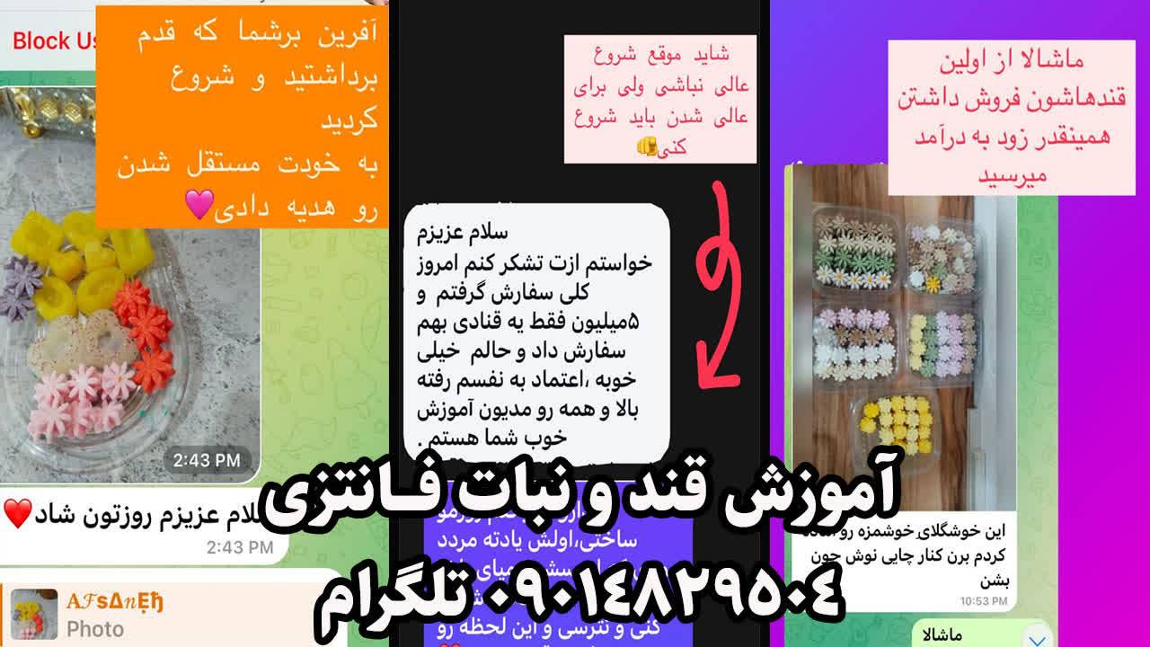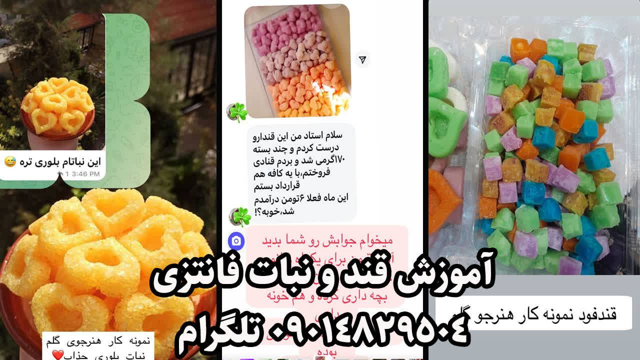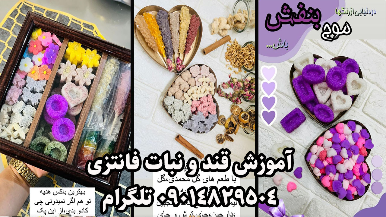 آموزش قند و نبات فانتزی به همراه آموزش بسته بندی بازاری و نحوه فروش است و مربی تا زمانیکه شما به درآمد برسید کنار شماست