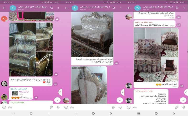 در اینجا نمونه کار هنرجویان مجازی آموزش کاور مبل را مشاهده میکنید.